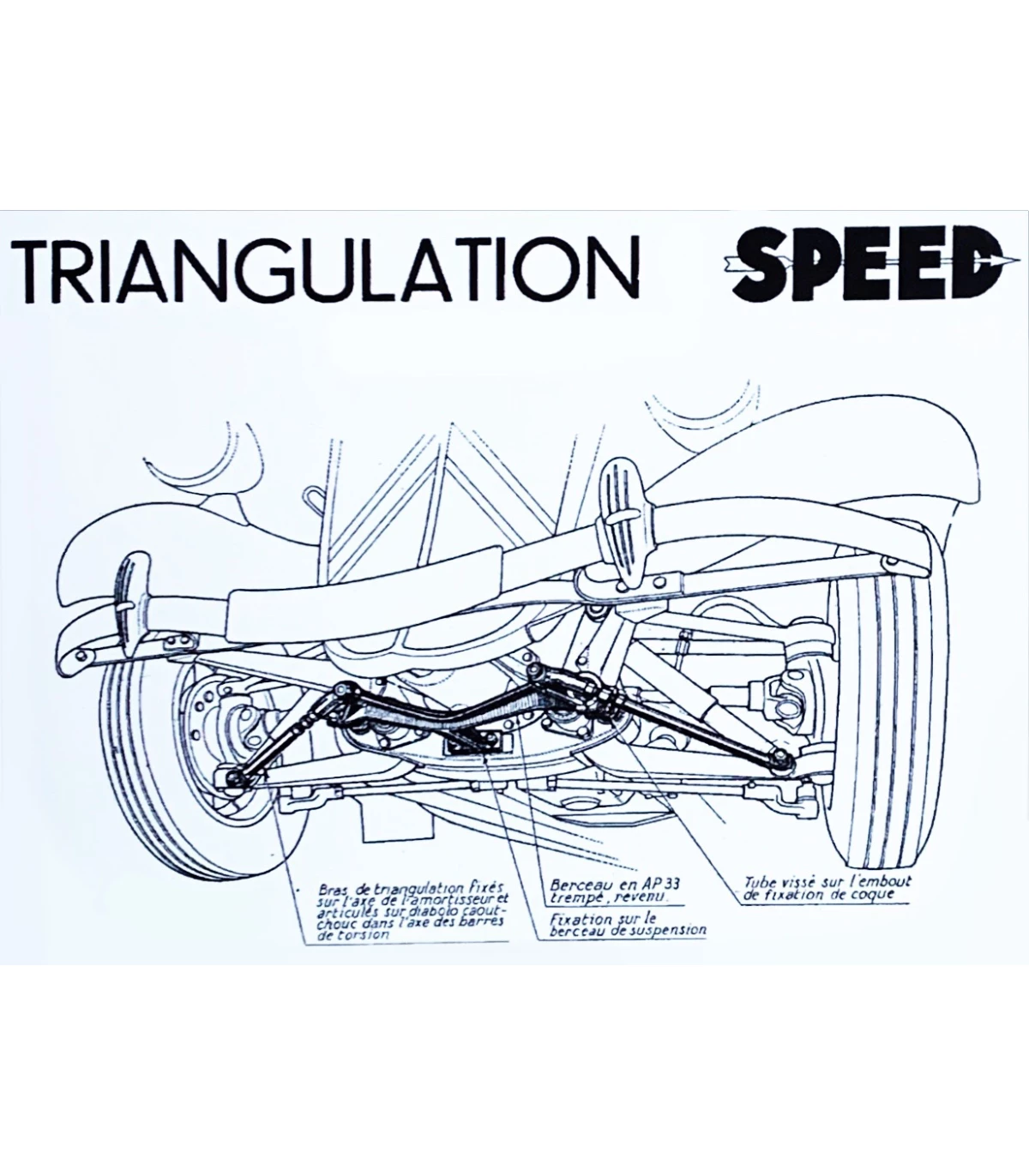 Triangulation de renfort de fabrication française pour le train avant des Citroën Traction.
