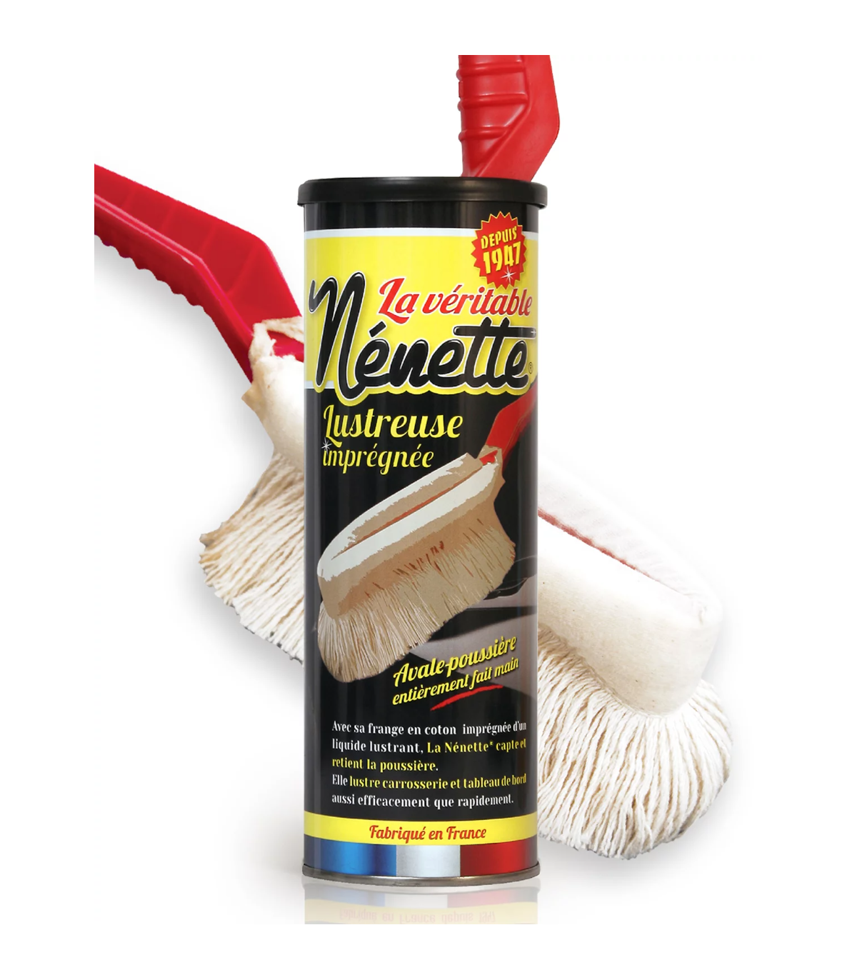 Fabriquée en France et mondialement reconnue depuis des décennies, La Lustreuse Imprégnée Nénette® est l’outil préféré des passionnés d’automobile. Grâce à sa frange en coton naturelle imbibée du célèbre Nénétol®, un liquide lustrant sans silicone, elle élimine efficacement la poussière tout en ravivant la brillance de la carrosserie et du tableau de bord.