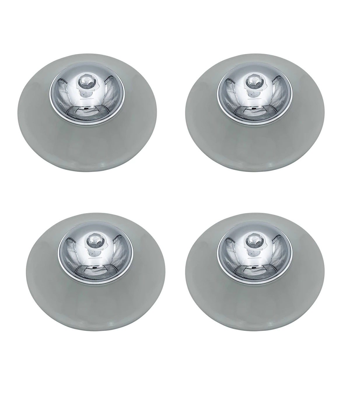4 enjoliveurs de roue BM en tôle avec traitement anti-rouille peinture en époxy gris + 4 coupelles chromé + 4 vis