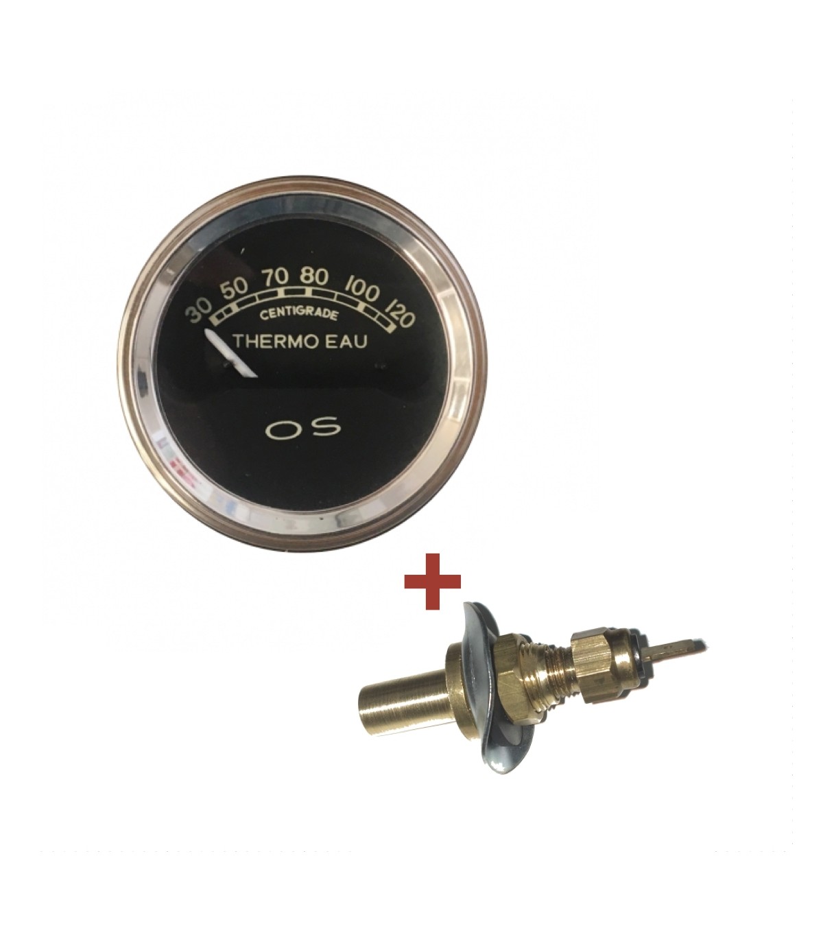 Manomètre de température d'eau électrique OS - Diamètre 52 mm - fond noir - en 6v - avec sonde sur durite