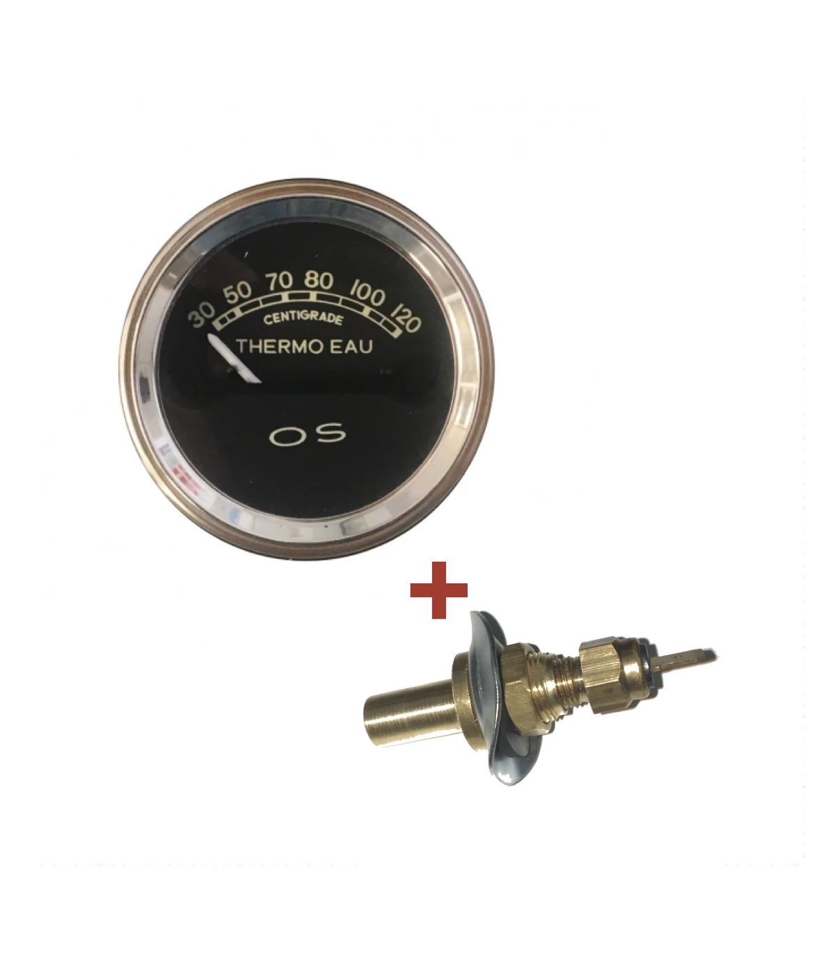 Manomètre de température d'eau électrique OS - Diamètre 52 mm - fond noir - en 12v - avec sonde sur durite