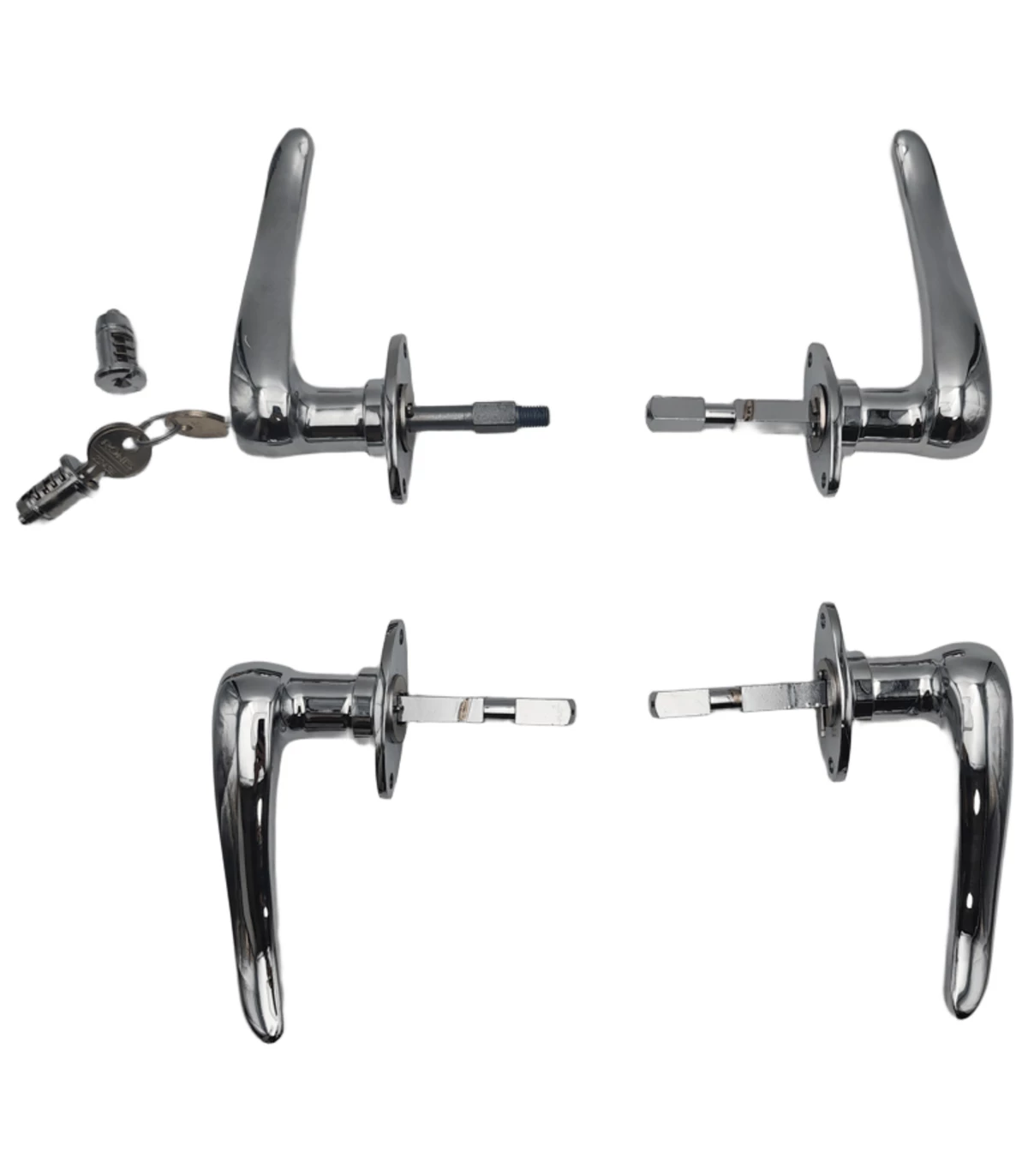 Chaque poignée est équipée d'une tige de commande métallique (la partie qui s’insère dans la porte), mesurant 8 mm de diamètre et 55 mm de longueur, assurant une compatibilité avec les systèmes d’ouverture d’origine.